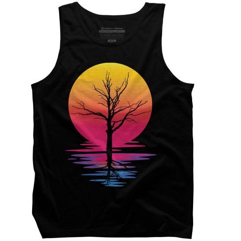 Men S Design By Humans Lone Tree Retro Spring Sunset By Kirikpantai Tank Top Black X Large Target